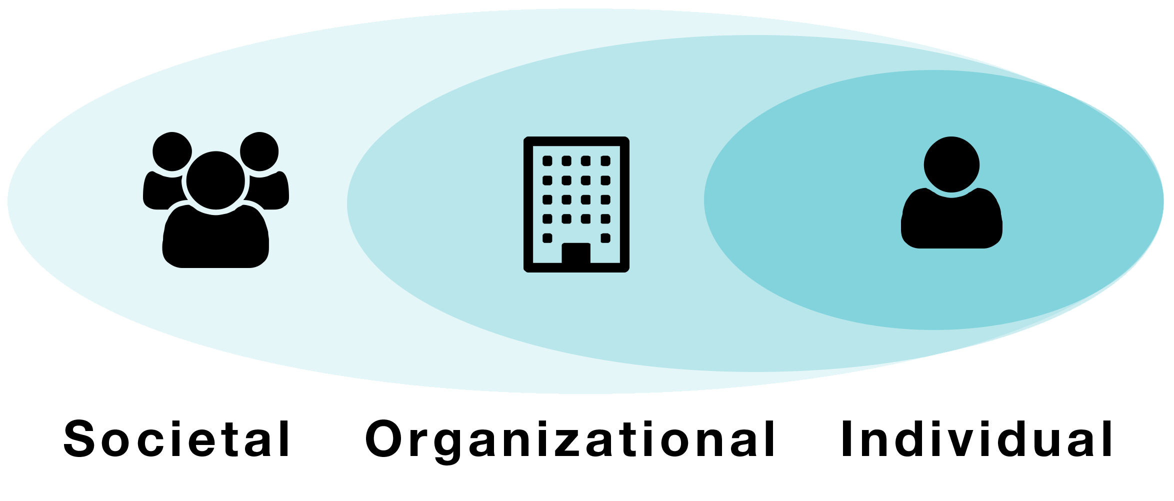 Understanding that organizations have unique needs, we provide tailored support that links societal, organizational, and individual barriers and actions for change, aligning them with organizational goals and priorities.