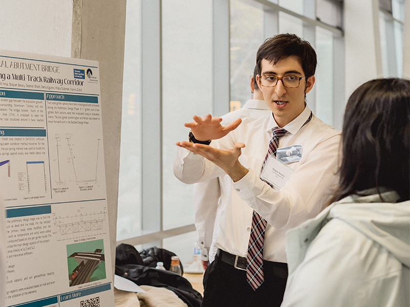 Barary thrived on the engineering courses and competitions at TMU that challenged his problem-solving capabilities. In the How to Change the World course, Barary and his team were tasked with increasing access to potable water for residents in the Philippines. Their proposal, which won Most Implementable Solution, focused on rolling out water filtration solutions to residential households. And most recently, Barary and his Capstone teammates designed an integral abutment bridge over a multi-track railway corridor to relieve traffic congestion in the Greater Toronto Area. Their solution won Best Capstone Project for Civil Engineering from TMU and Best Capstone Design for Bridge Structures from the Institution of Structural Engineers (IStructE), England, Toronto Chapter.