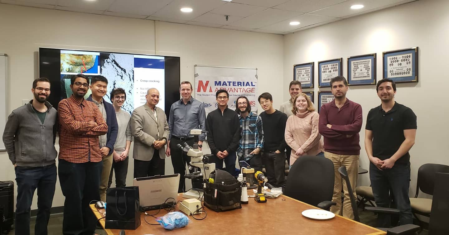Bernoulli Andilab with the Material Advantage Chapter, a materials science student group at TMU, alongside Professor Ravi Ravindran. The chapter hosted industry expert, Shane Turcott, who demonstrated his work in Failure Analysis.
