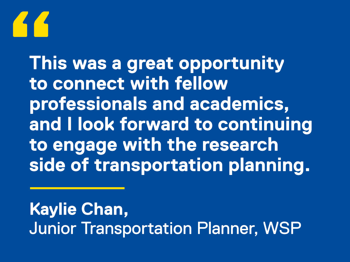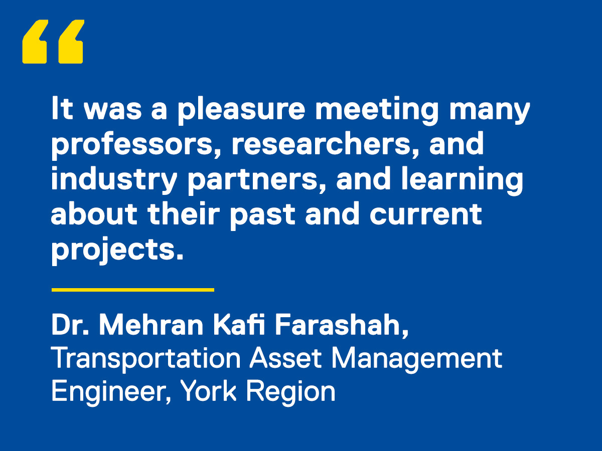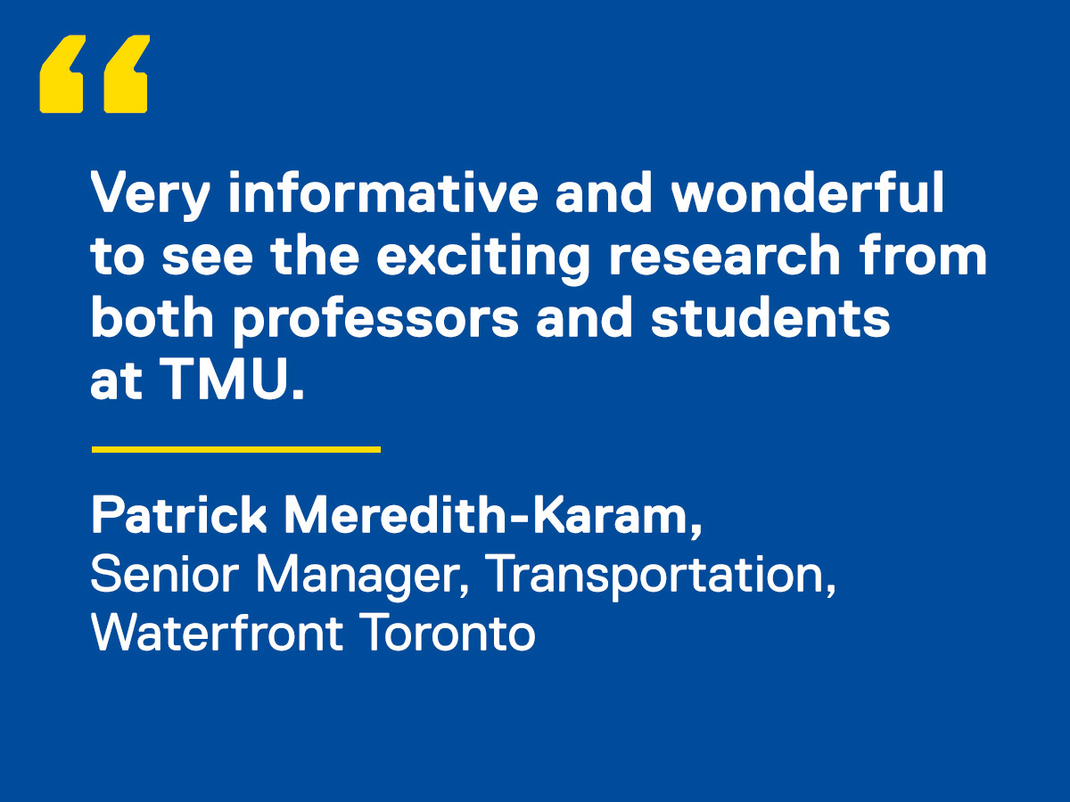 Following the panel discussion, TMU faculty members from the Department of Civil Engineering and the School of Urban and Regional Planning presented their latest research across four thematic sessions: urban planning, policy and active transportation; smart mobility, geospatial tech and data science; sustainable Infrastructure, materials and asset management; and transportation safety, road design and remote sensing.