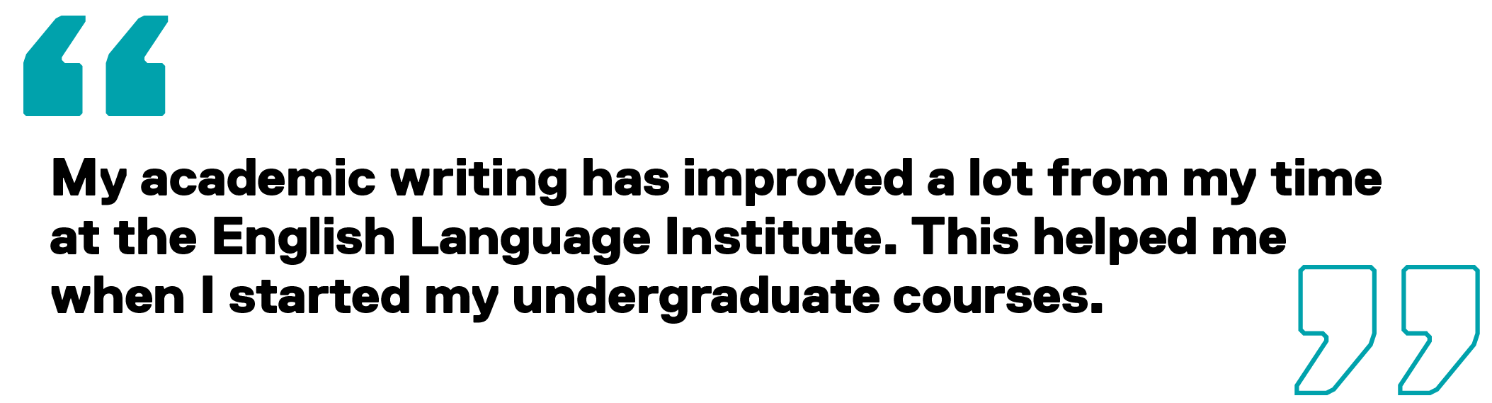 "My academic writing has improved a lot from my time at the English Language Institute. This helped me when I started my undergraduate courses."