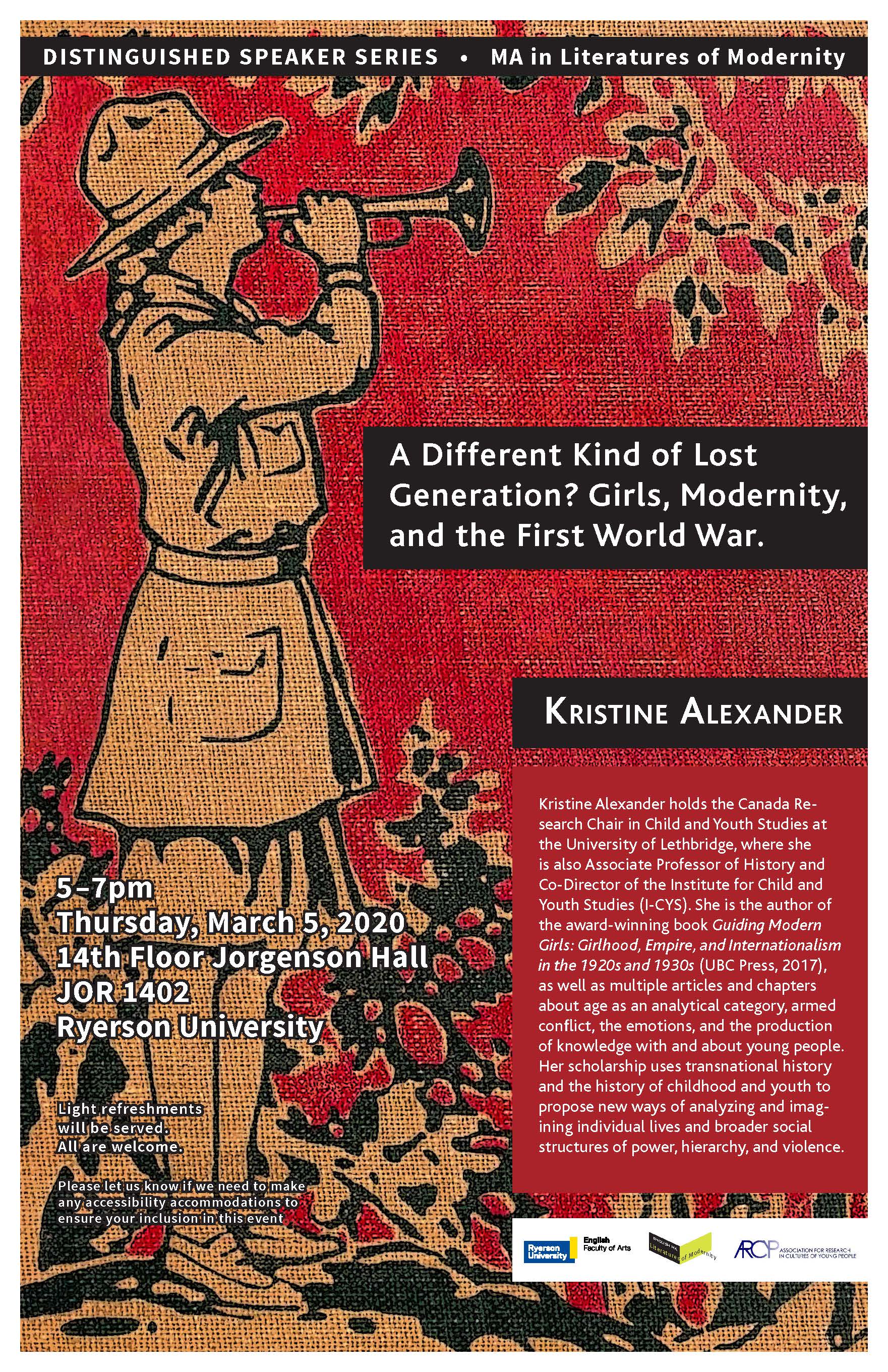 Kristine Alexander holds the Canada Research Chair in Child and Youth Studies at the University of Lethbridge, where she is also Associate Professor of History and Co-Director of the Institute for Child and Youth Studies (I-CYS). She is the author of the award-winning book Guiding Modern Girls: Girlhood, Empire, and Internationalism in the 1920s and 1930s (UBC Press, 2017), as well as multiple articles and chapters about age as an analytical category, armed conflict, the emotions, and the production of knowledge with and about young people. Her scholarship uses transnational history and the history of childhood and youth to propose new ways of analyzing and imagining individual lives and broader social structures of power, hierarchy, and violence.