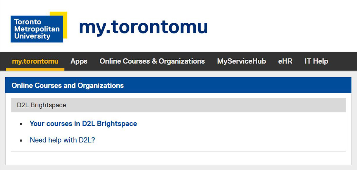 1. Log into my.torontomu.ca and click on “Your courses in D2L Brightspace.”