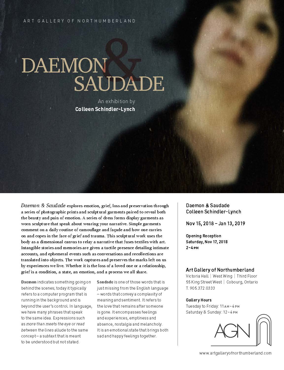 This exhibition explores emotion, grief, loss and preservation through a series of photographic prints and sculptural garments paired to reveal both the beauty and pain of emotion. This exhibition took place at the Art Gallery of Northumberland (external link, opens in new window) located in Cobourg, Ontario.