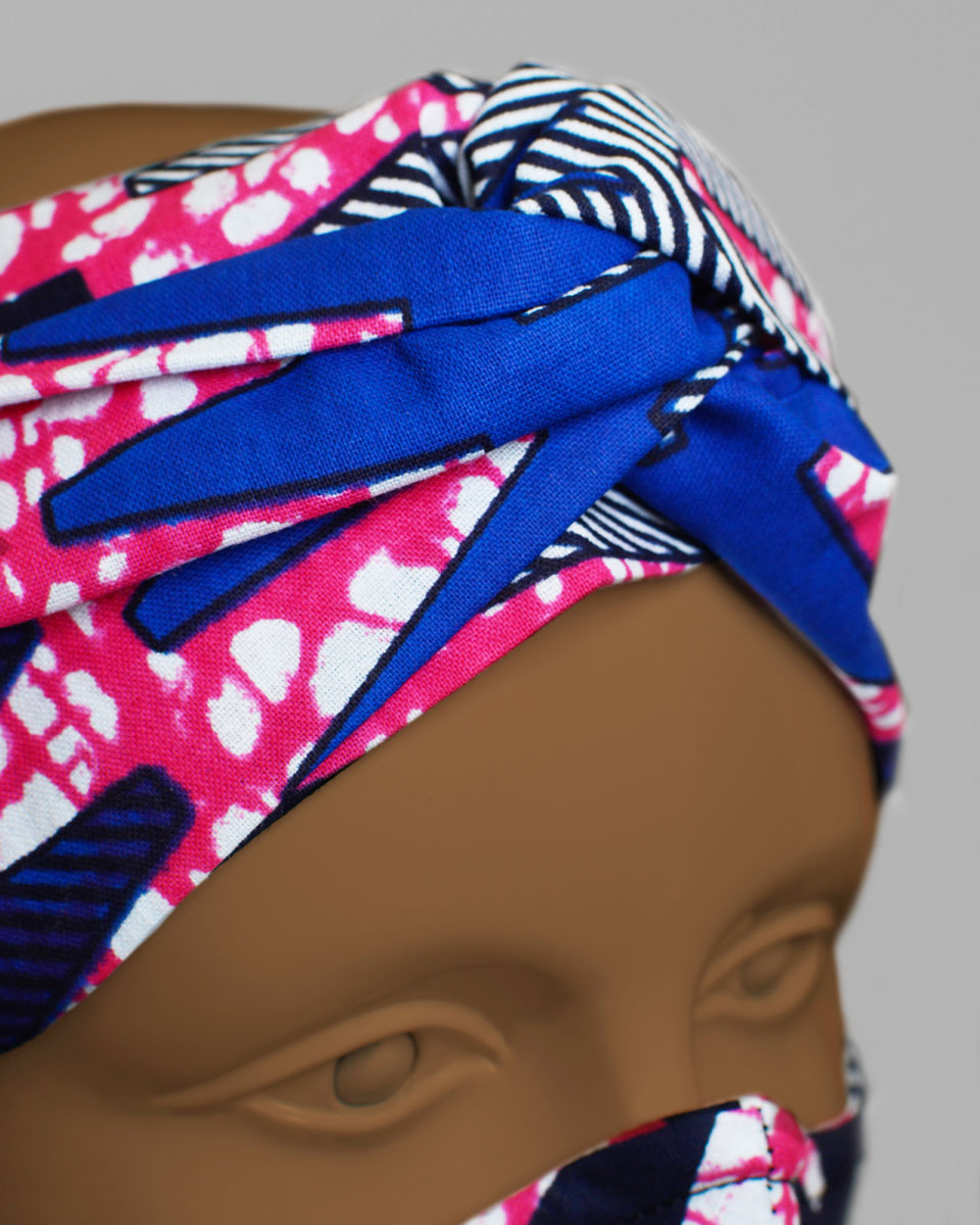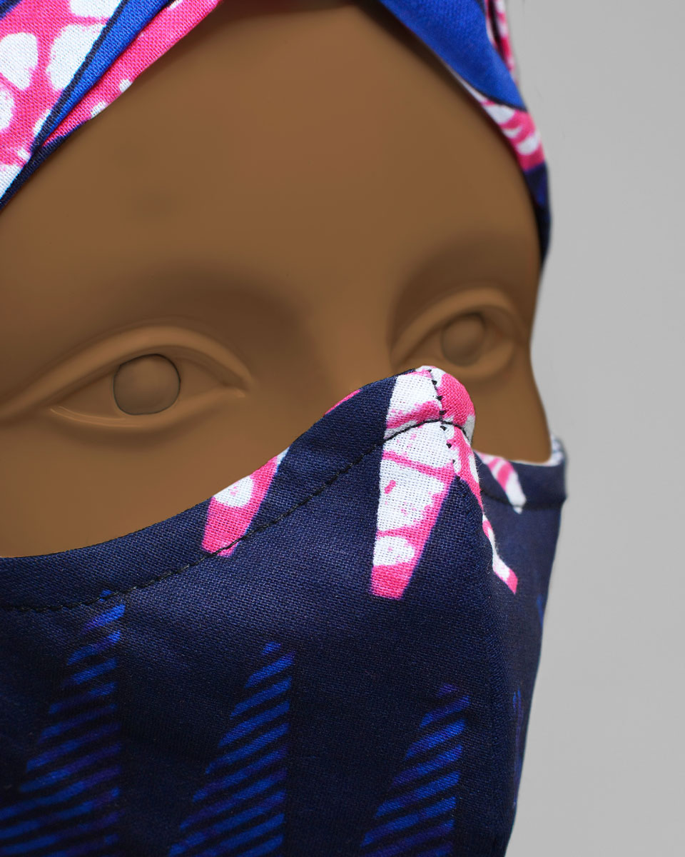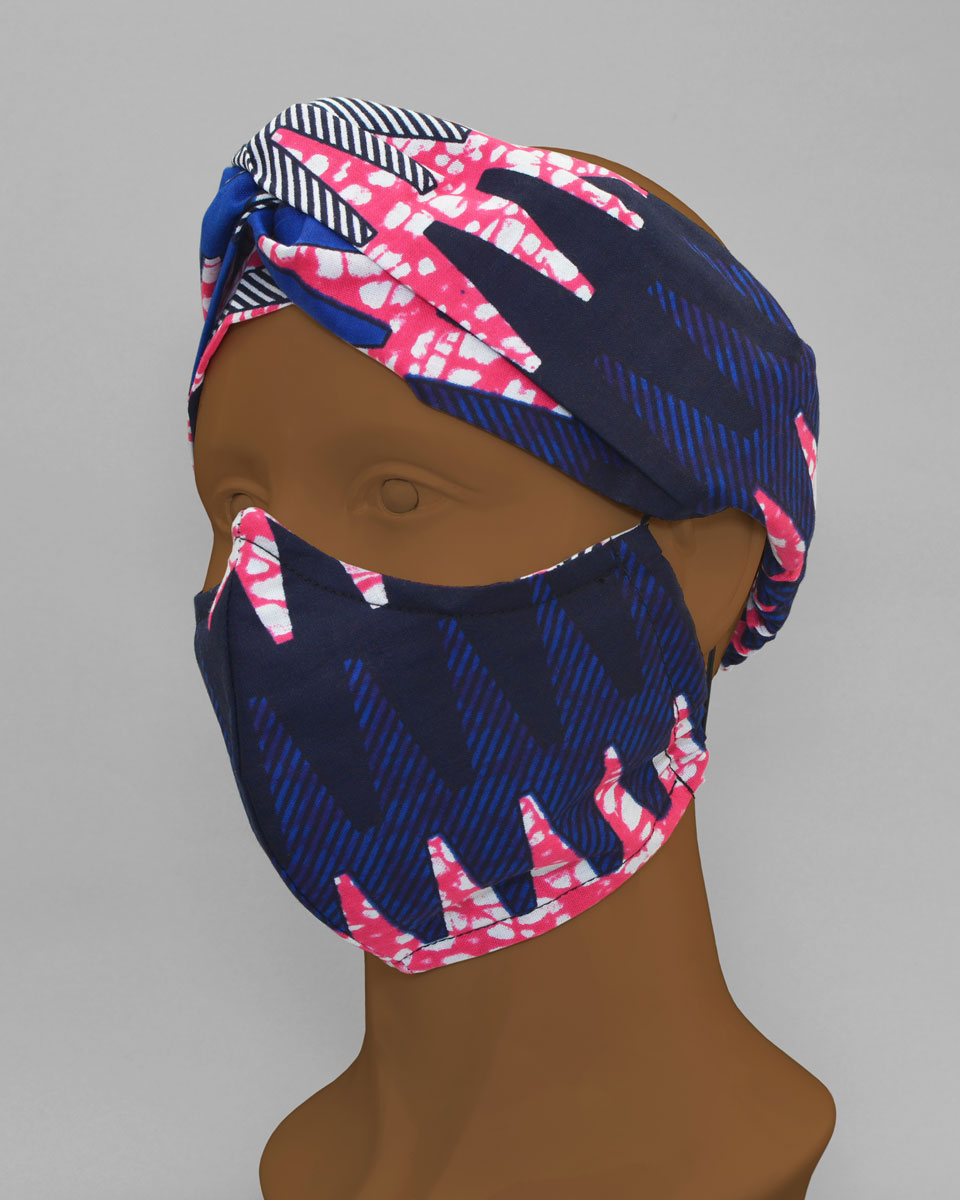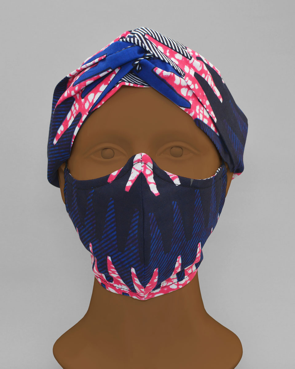 Fashion designer Stacey Okungbowa of O’Sade Designs sold masks and matching sets with turban-style headbands and headwraps throughout the pandemic. As her way of making mask-wearing fashionable, Okungbowa used colourful African printed fabrics, which are a common element in her designs.