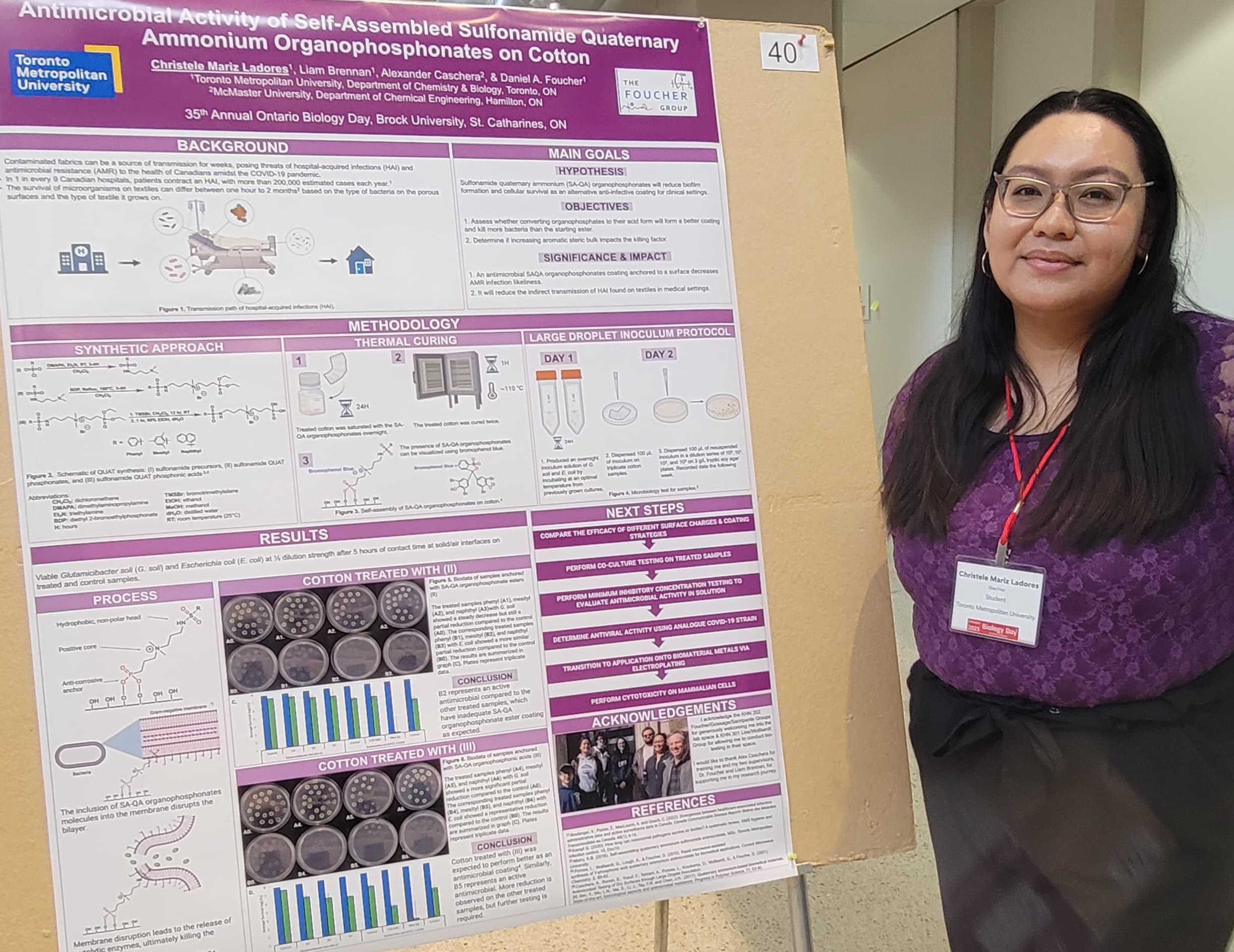 - March 25th, 2023 – Christele Ladores wins 1st place in the Microbiology Division at the 35th Ontario Biology Day Conference at Brock University