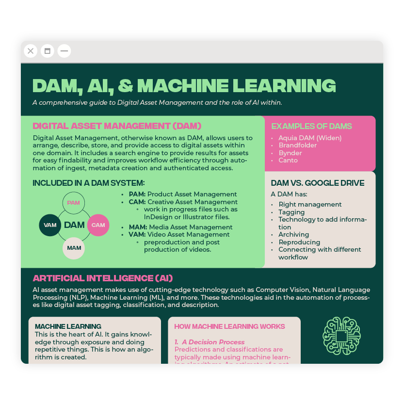 DAM, AI and Machine Learning: Leveraging AI and Machine Learning with DAM systems for enhancement content discovery, analysis and automation.