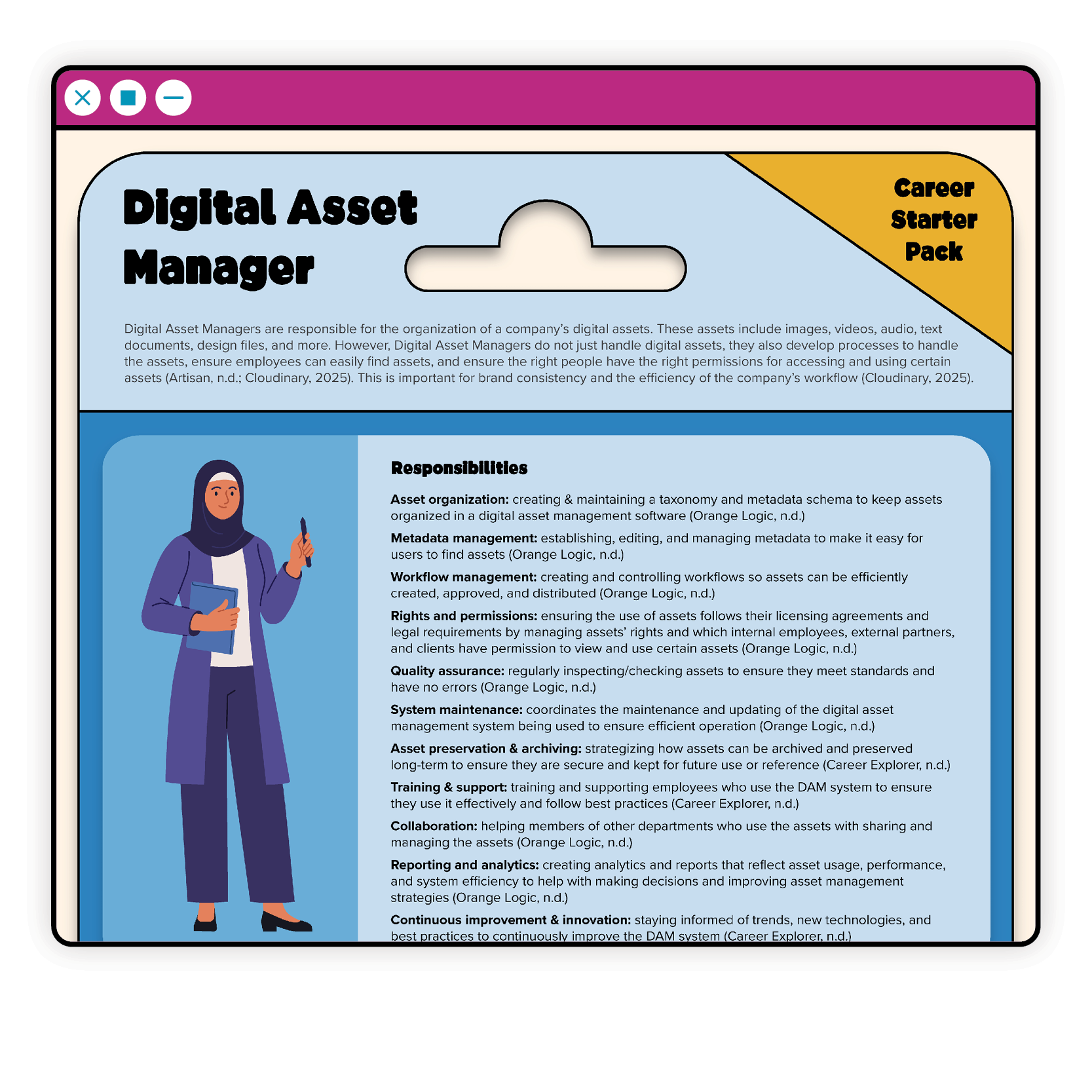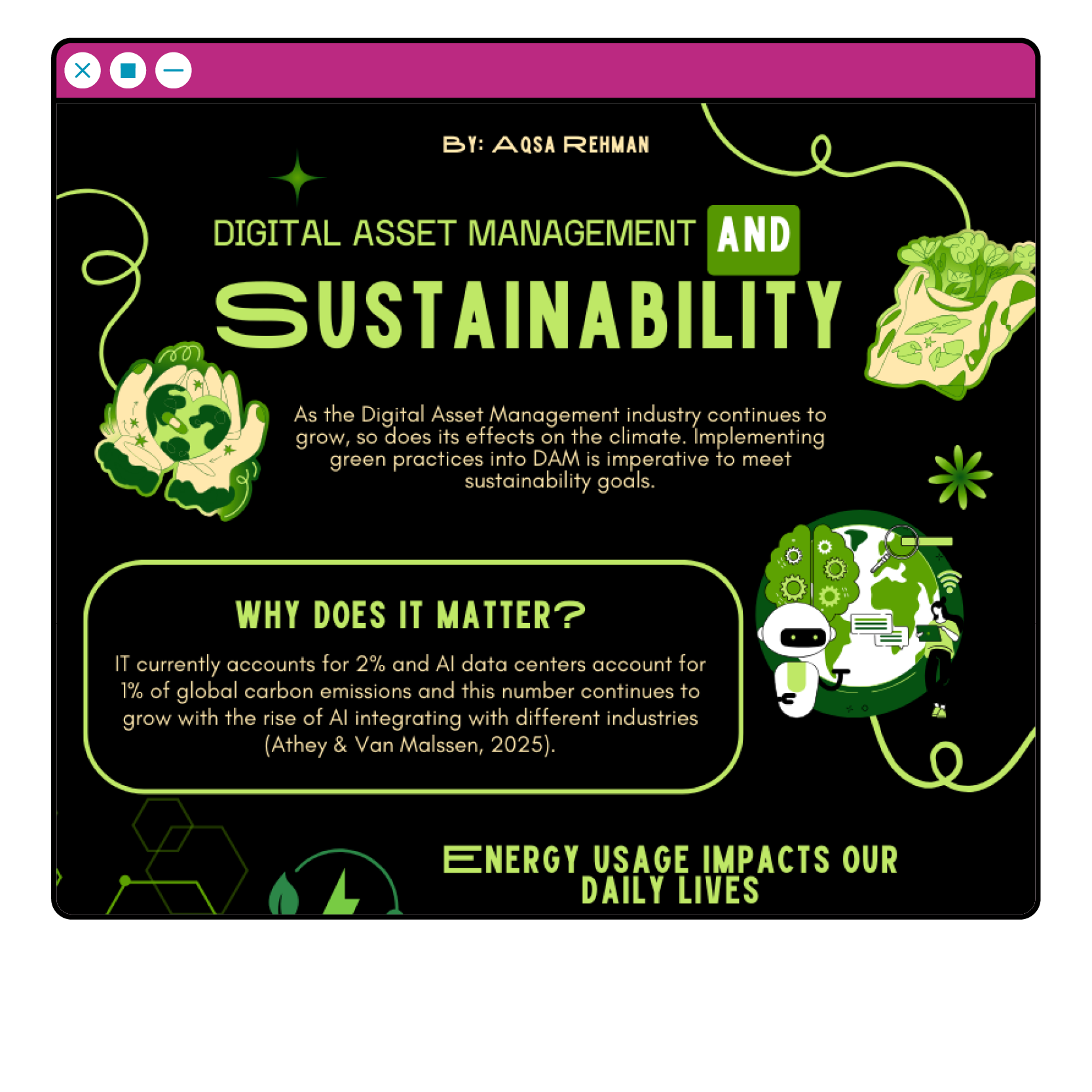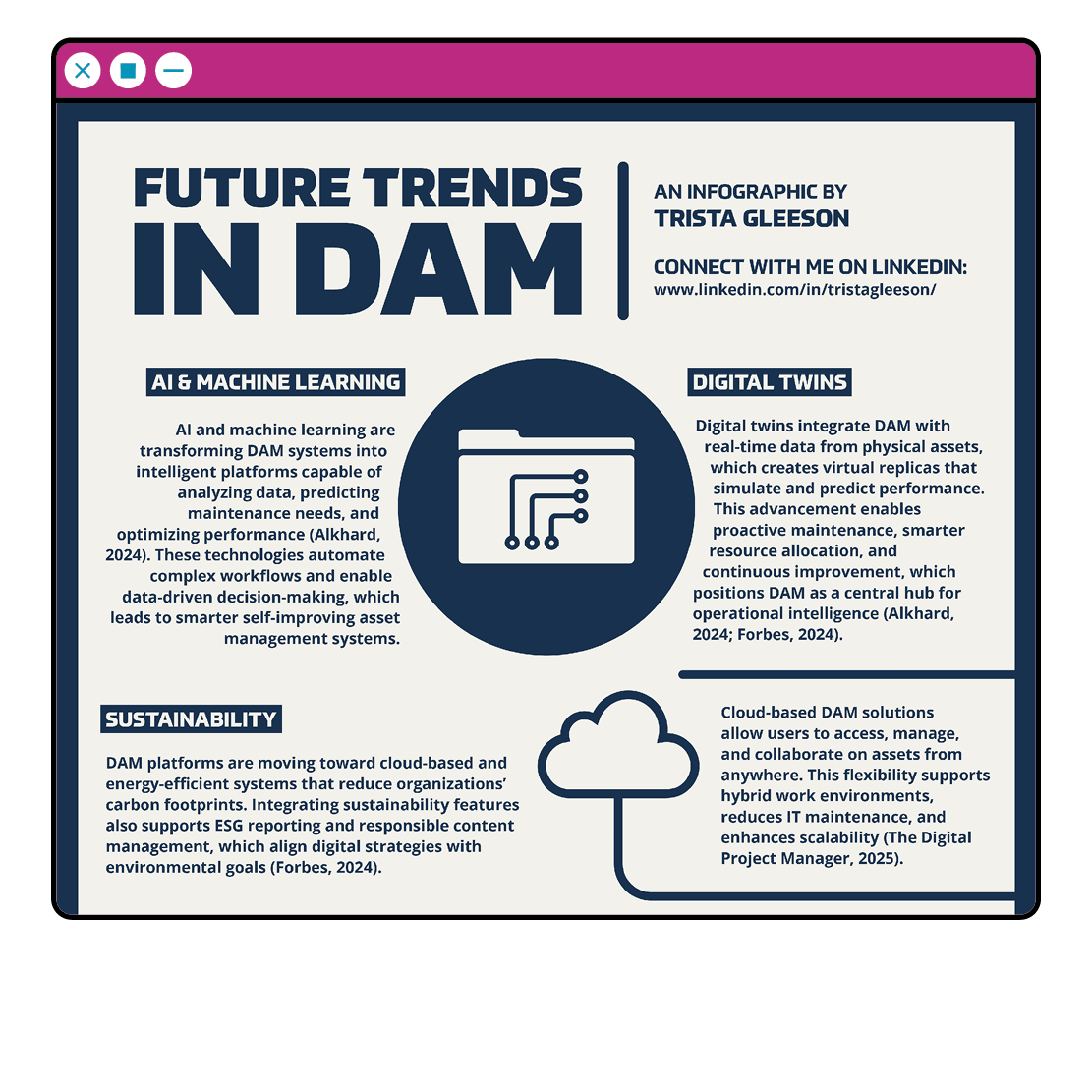This past fall term I had the privilege of teaching GCM 460 Asset Management in Graphics Communication. We introduced students to the foundations of digital asset management in graphic communications and allowed them to employ their knowledge this semester through an assignment called the DAM creative, in which they selected a sub-topic related to the course and re-introduced it through a creative medium.