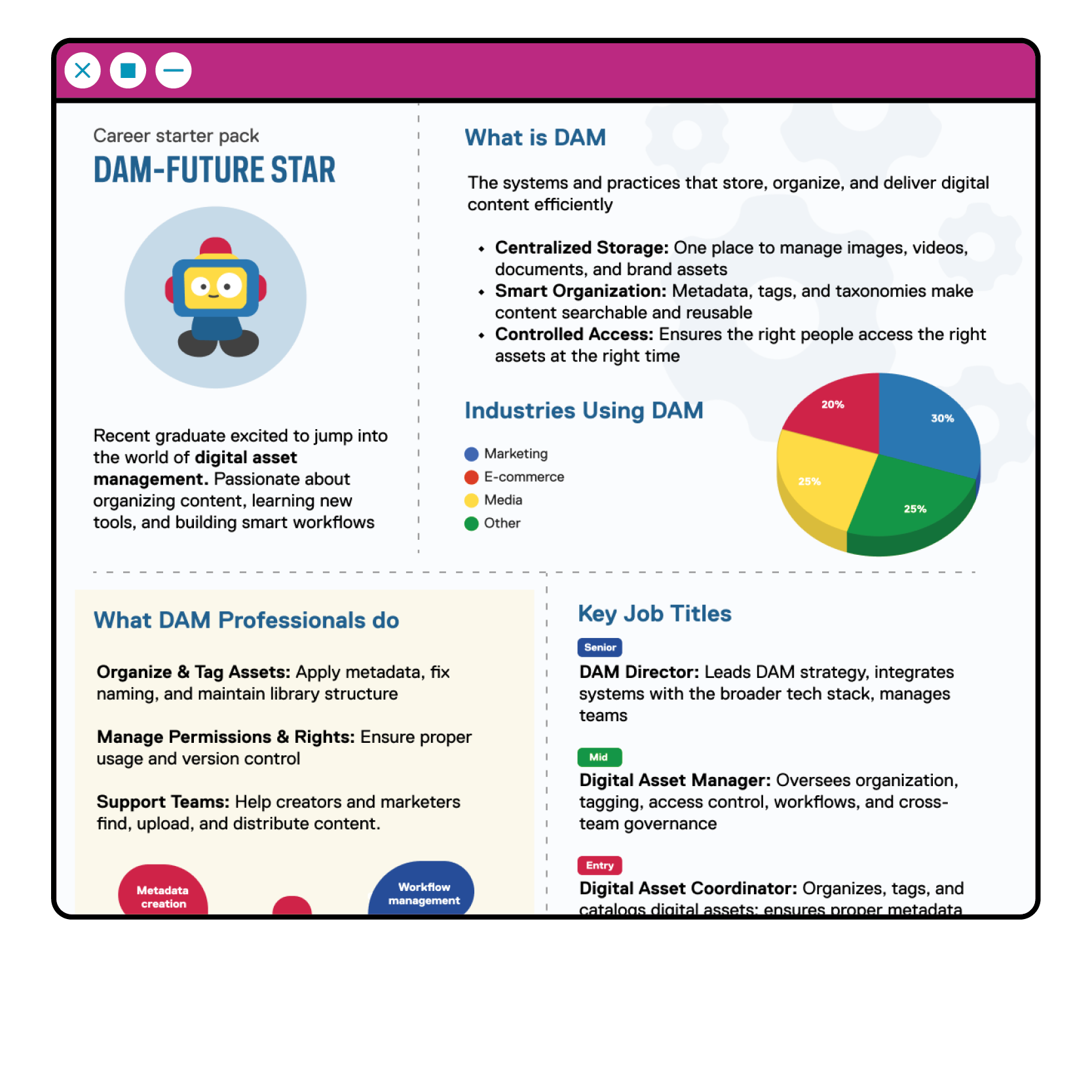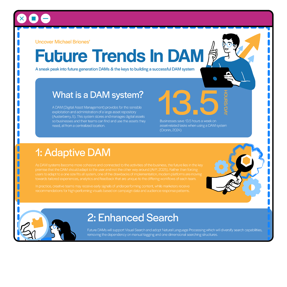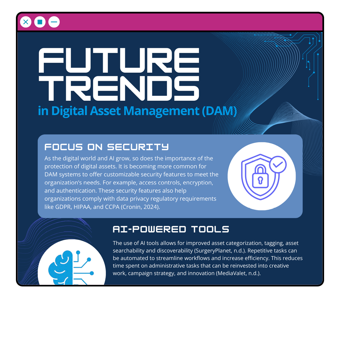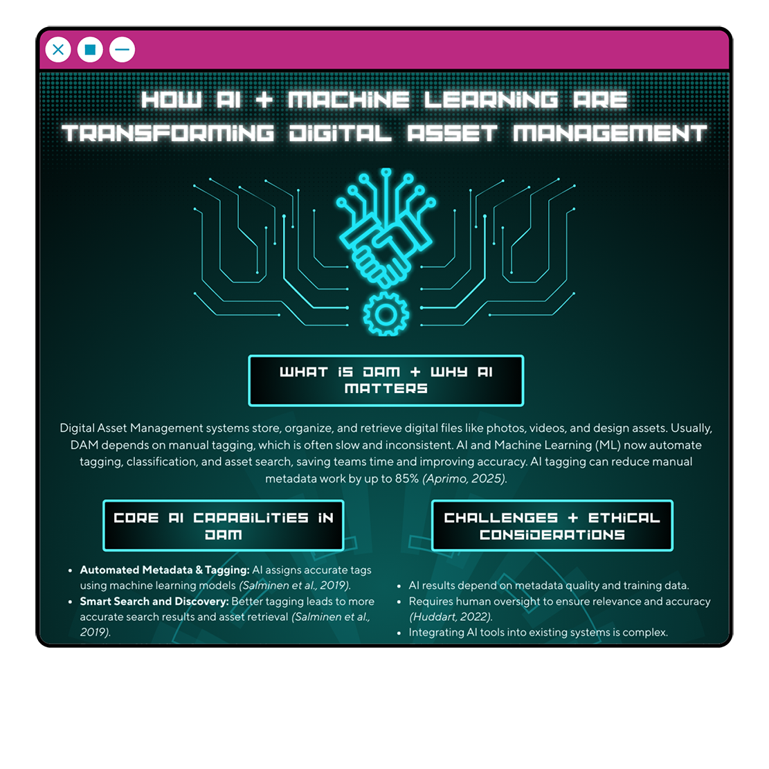 This past fall term I had the privilege of teaching GCM 460 Asset Management in Graphics Communication. We introduced students to the foundations of digital asset management in graphic communications and allowed them to employ their knowledge this semester through an assignment called the DAM creative, in which they selected a sub-topic related to the course and re-introduced it through a creative medium.