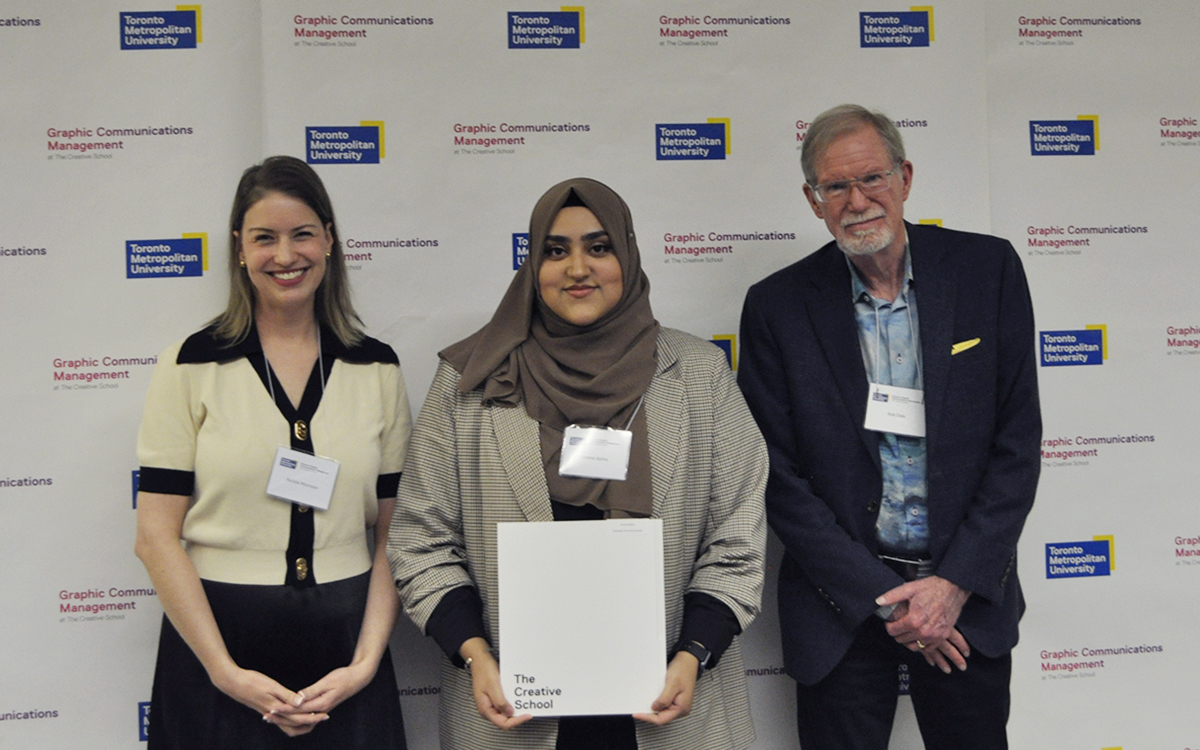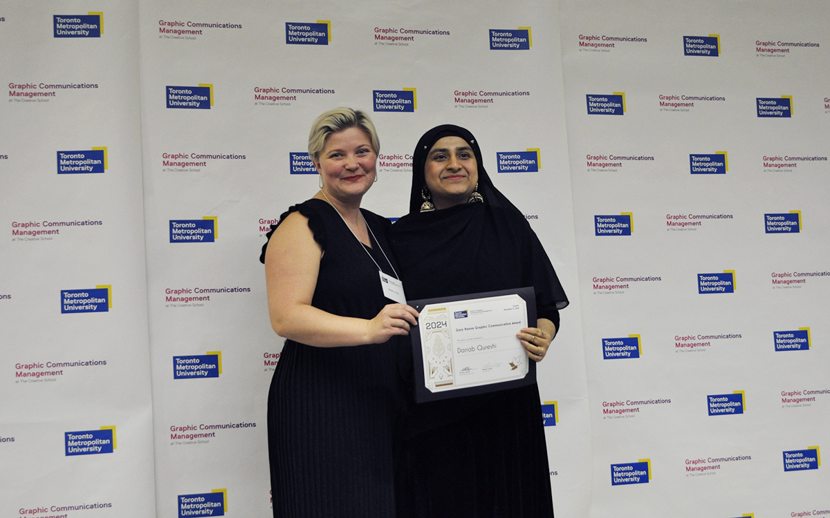 Awarded to a student with the best project in digital embellishment, as determined by a panel of Toronto Metropolitan University faculty and staff, coordinated by the School of Graphic Communications Management. Through AwardSpring please upload your project in digital embellishment and a brief artist statement about your work (max 250 words) as one PDF on AwardSpring. |