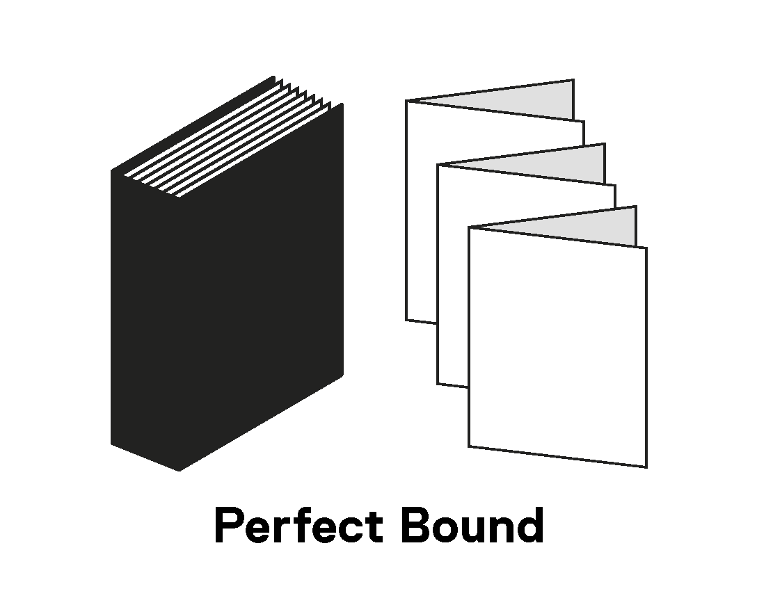 An image demonstrating how pages are collated for perfect binding. With this method many small booklets are made then gathered side-by-side, cut, and bound together.