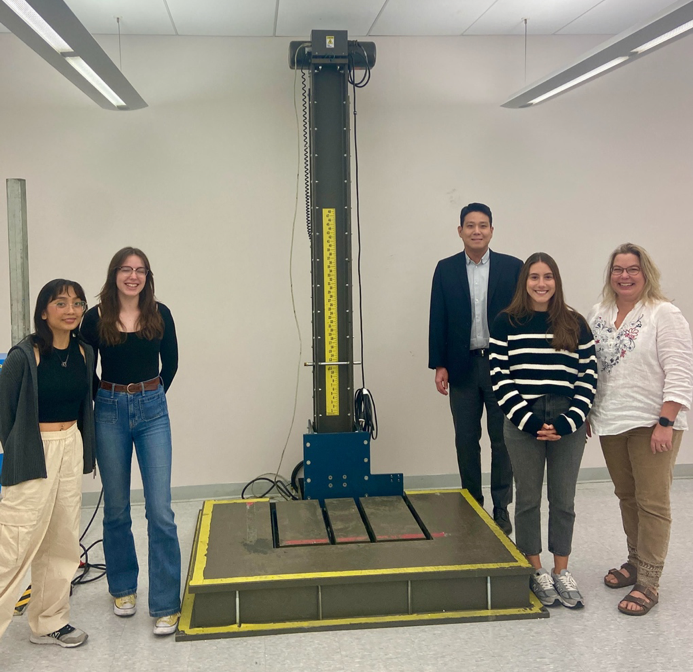 Member of the Sustainable Packaging Research Lab with the donated drop tester