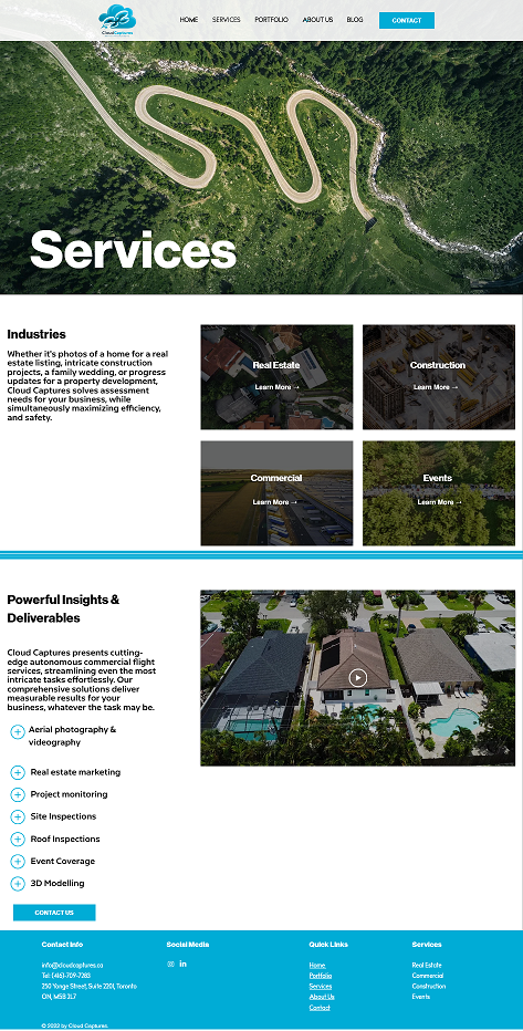 Independently, Thomas Kostopoulos, another Geographic Analysis student, became interested in drones and their applications in the real estate sector. With a number of core geospatial technology courses, a couple of real estate management electives, and an internship in property assessment under his belt, Thomas was well prepared to dive into the drone business upon his graduation less than two years ago. Thomas founded Cloud Captures (external link) with the mission "to provide our clients with high-quality, stunning aerial photography and videography that elevates their projects and helps them achieve their goals". Excitingly, Cloud Captures already had the opportunity to work with some high-profile clients including the Canadian National Exhibition and the Toronto Honda Indy.