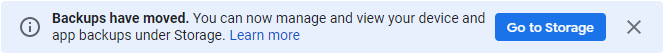 You may start seeing a banner to view your Backups in Google Drive (image above). This new Backups section is within the Storage section of Google Drive. The Storage section in Google Drive displays all the files in your Google Drive that are not native Google files and that take up space in your Google Drive.