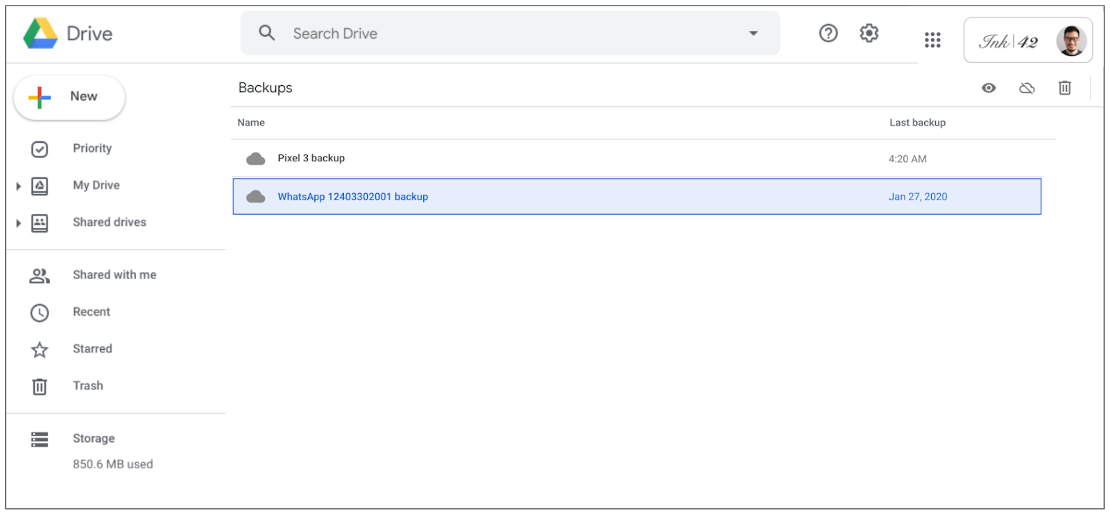 - Only WhatsApp on Android (external link) and Android device backups (external link) are stored in the backup section of Google Drive.