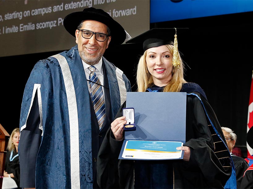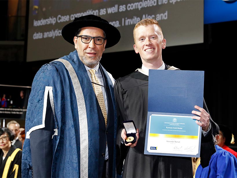 The Toronto Metropolitan University Gold Medal is the University's highest honour, awarded to students with outstanding academic achievement combined with outstanding involvement with the University, their profession, and/or the community.