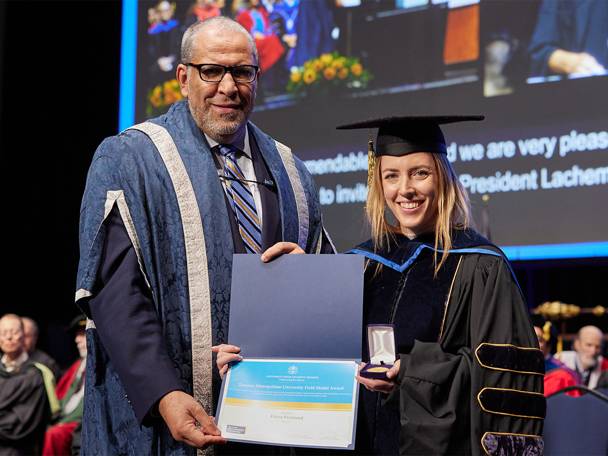The Environmental Applied Science and Management (EnSciMan) PhD alumna was recently awarded a TMU Gold Medal at Convocation. Gold Medals are awarded to one student from each faculty who demonstrates outstanding academic achievement and involvement in the university community.