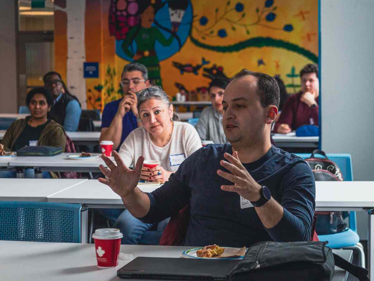 TMU postdocs in conversation at professional development event.