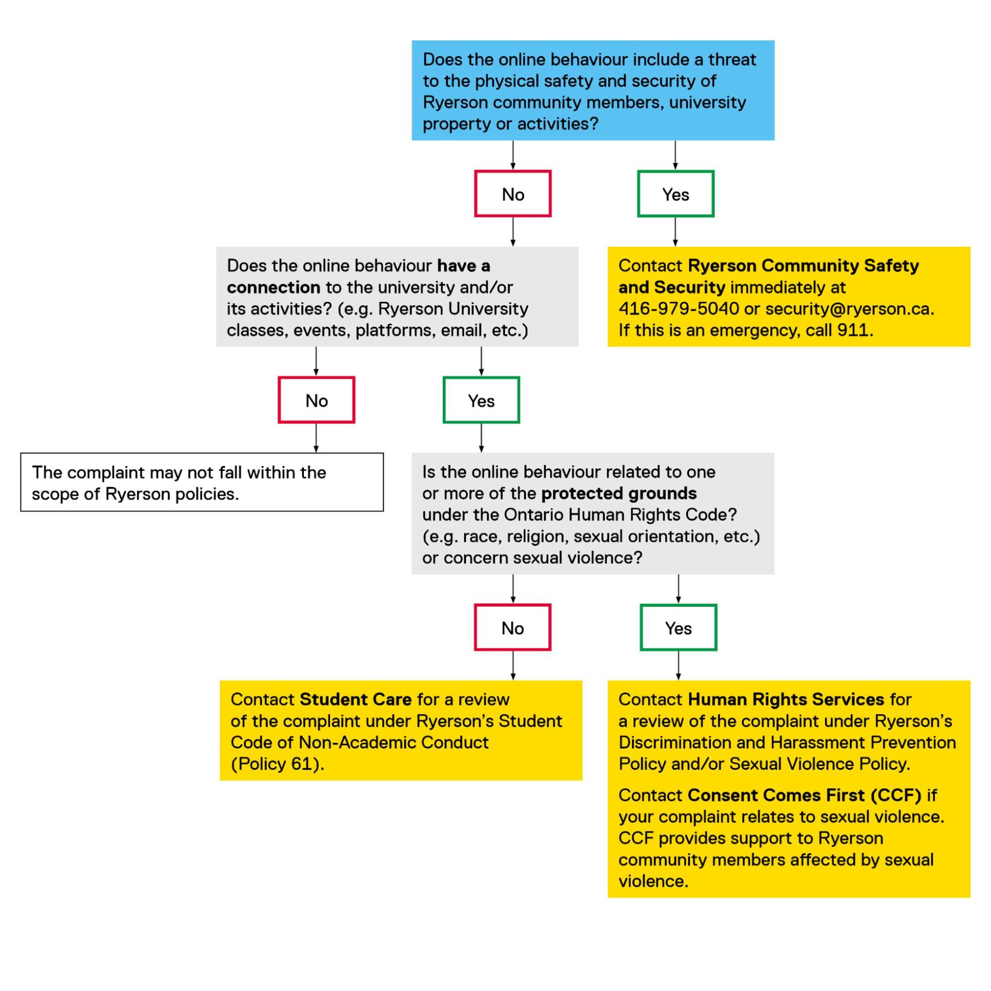 If you have a concern involving the online behaviour of a student, use this decision making tree to assess which office you should direct the inquiry to: