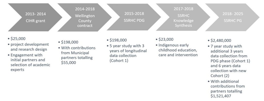 - The PDG was funded from 2015 to 2018, but the work conducted under this constellation of research started in 2013 with consultation with communities for the collaborative design of the study. In 2014, it received direct support from the County of Wellington (and the cities of Toronto and Hamilton and the District of Timiskaming).