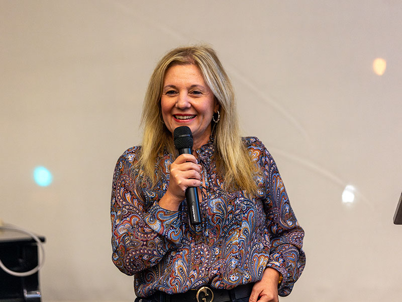 Provost Roberta Iannacito-Provenzano speaking at microphone