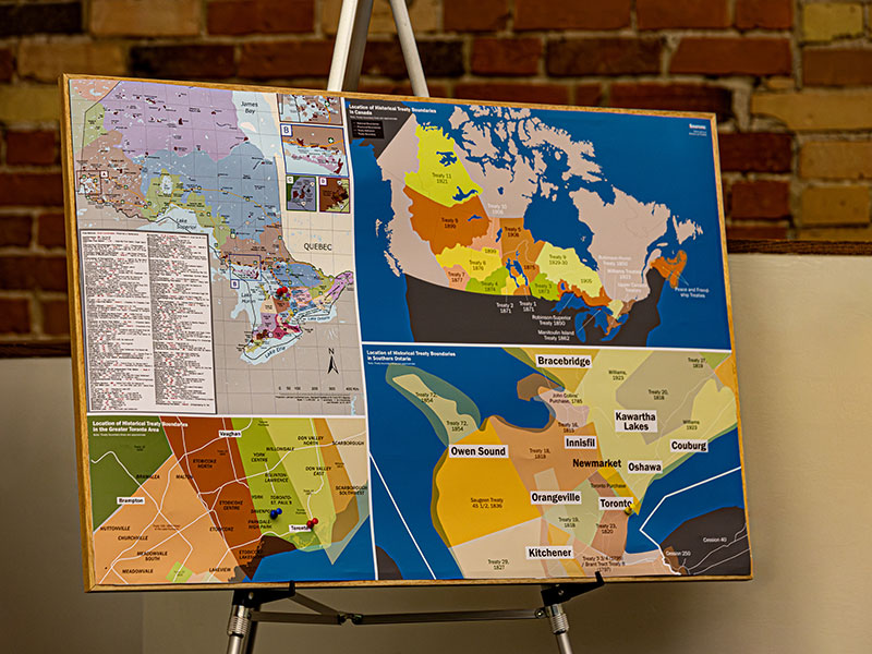 Led by TMU’s Centre for Excellence in Learning and Teaching (CELT), TMU educators and staff gathered for a community read-in to learn about the treaties covering TMU's territory. Participants collectively read excerpts from several treaties​ to understand them better​. At the event's start, participants were invited to draw a representation of home and place it on the map​, showcasing our relationship to the land and obligations to treaties.