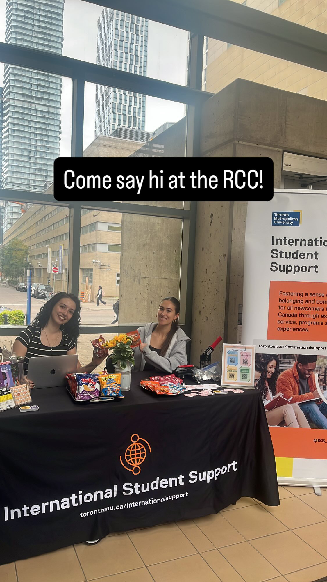 After a very successful event, I headed to the Rogers Communications Centre to meet my supervisor for a tabling session, where we promote our services and answer student questions. I work as a Career Boost student at the International Student Support (ISS) office as an International Peer Ambassador. My role includes being the lounge host, planning and helping with events, supporting at the front desk and connecting with students at information tables on campus. I have been loving this job so far, and my favourite part is meeting new international students and having meaningful conversations.
