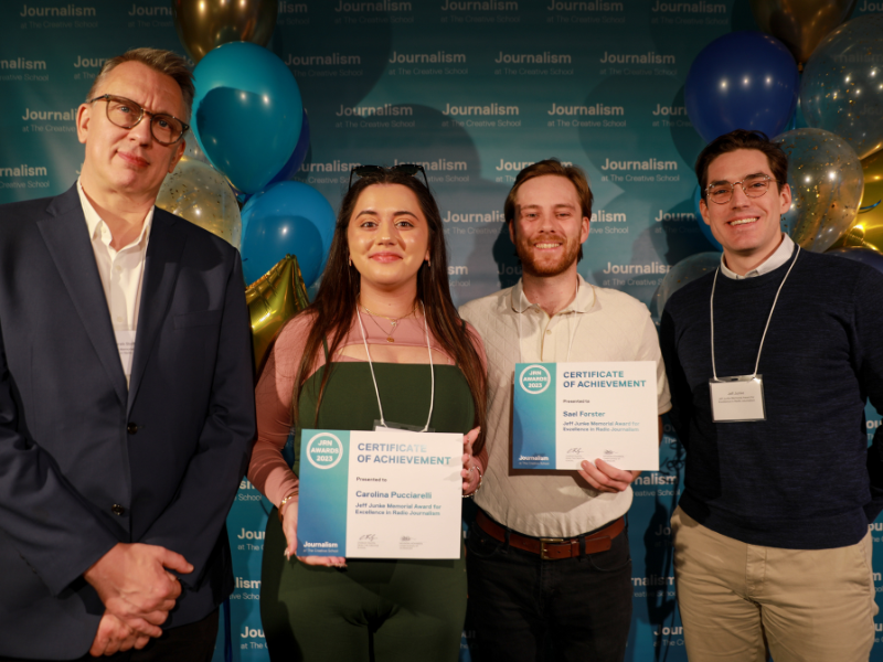 Jeff Junke was a producer of CBC’s Metro Morning in Toronto when he passed away in 1988. He had previously worked at CBC National Radio News in Sudbury. His colleagues at CBC National Radio News in Sudbury and his family established this award in 1989 to honour his memory.