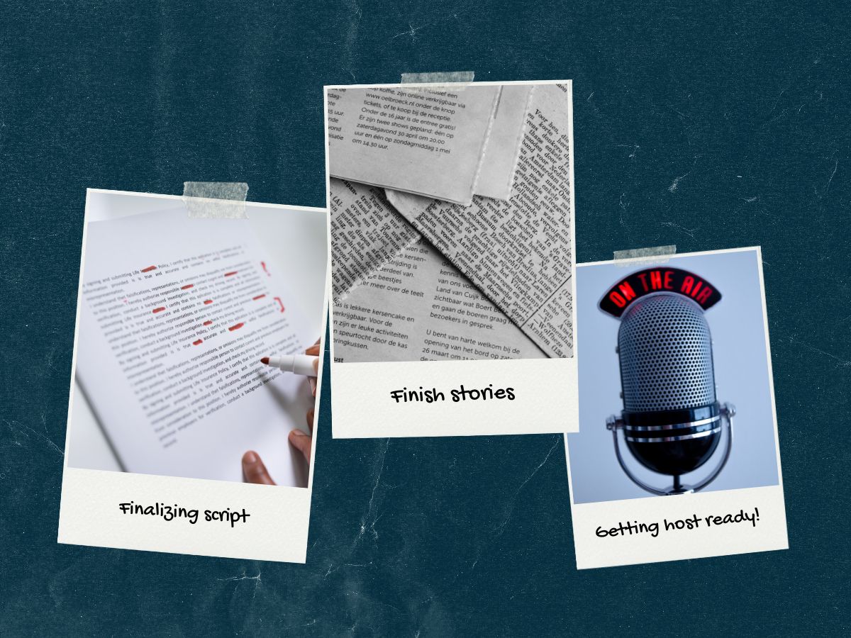 Our story meetings usually take place virtually and this is where we meet up in something called pods, which is usually groups of three producers. Here is where we pitch our story ideas and brainstorm treatments around how we could put together the show. Other local shows are a bit different: they usually would pitch guests and do seven minute interviews, but at The Current we come out with a whole roll out, which is basically describing what the story is (confirming guests, focus statements, additional audio and tape being used, etc.). We take the best two story ideas (sometimes three) out of this meeting, into the next one.
