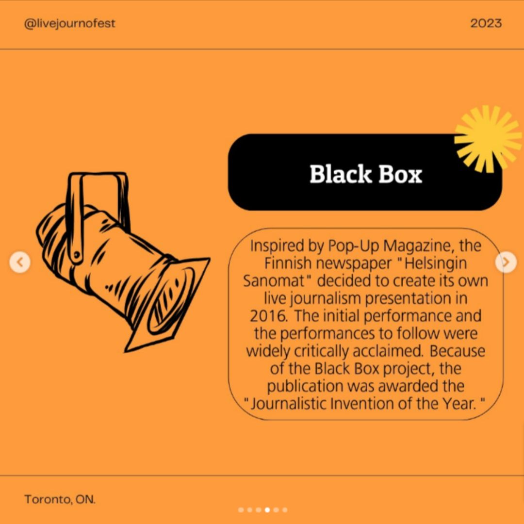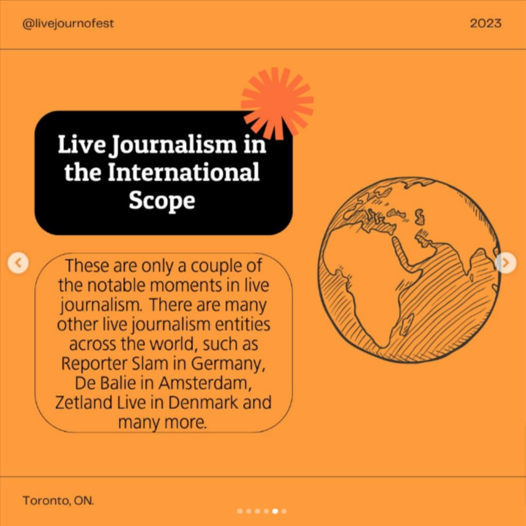 I hope the festival has stimulated interest in live journalism. For those who feel inspired and want to get involved, I highly suggest checking out TMU’s live journalism course, taught by Fatah. The course will take place again next winter and is open to any journalism students in third year or above.
