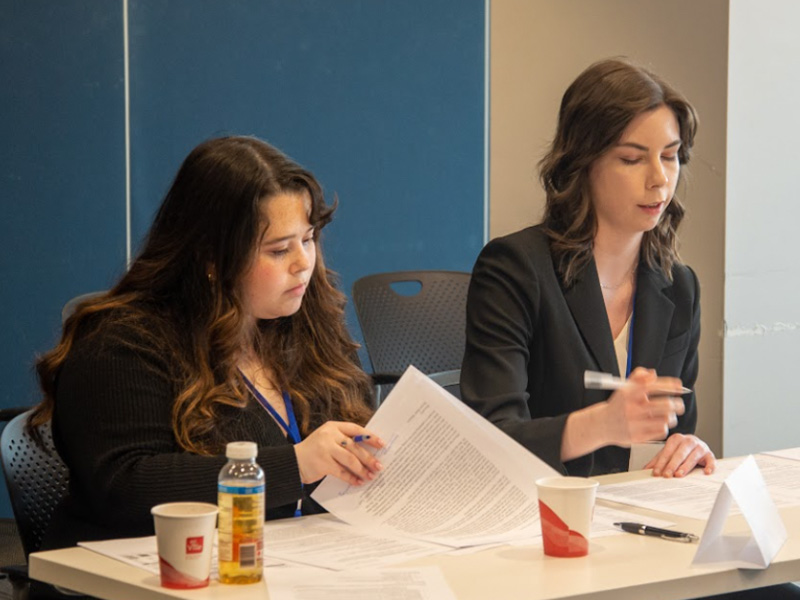 Second-year students Julia Coote and Shany Raitsin represented Lincoln Alexander at this year's Walsh Family Law Negotiation in Toronto, Ontario. This marks the school’s first time competing in the Walsh Family Law Negotiation, which explores several themes in Family Law such as spousal support, parenting time schedules, best interests of the children, and more.