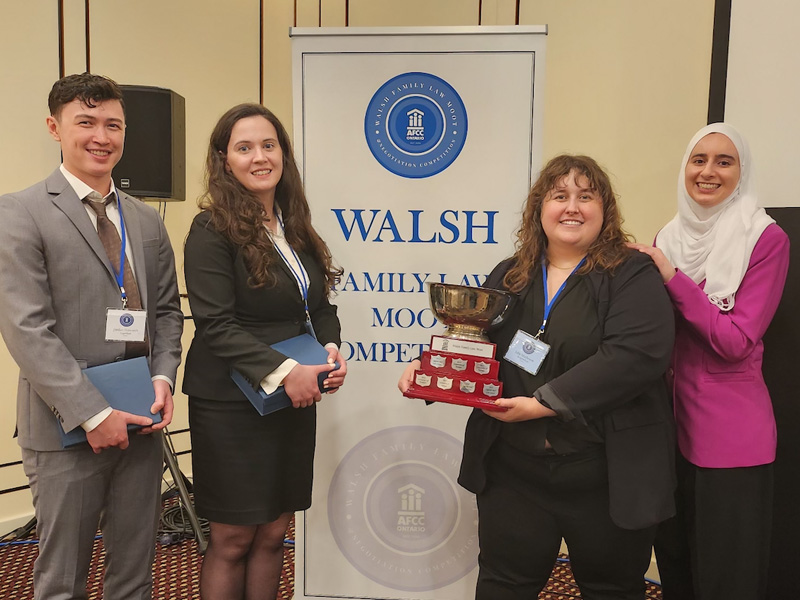 The team included second-year students Meagan MacArthur, Julie Matheson, Lila Mansour and Jordan Haworth, guided by their coaches Laura Petryshen, Geoffrey Carpenter, Gida Deti. This team worked tirelessly over the school year leading to their great success that will pave the way for many more successful Lincoln Alexander Mooting Teams.