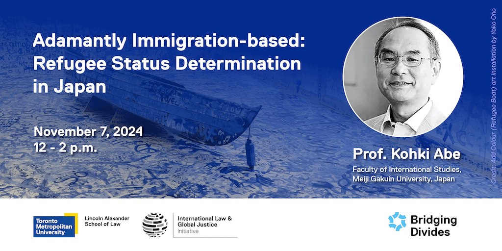 Following this presentation, Lincoln Alexander Law's Prof. Hilary Evans Cameron will join Prof. Abe in conversation to share insights into the common challenges facing asylum applicants in refugee status determination systems internationally.