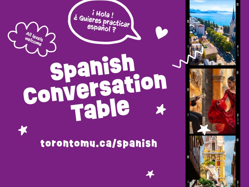 Whether you are a new SPN 101 student or a native speaker, all TMU students, staff, and faculty are welcome. Snacks will be provided.