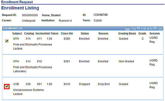 - Click the checkbox to the left of the class you want to drop.