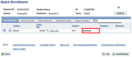 - Success: the student was enrolled in the class with no errors.