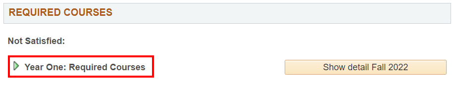 5. Click the arrow beside Required Courses for the applicable requirement.