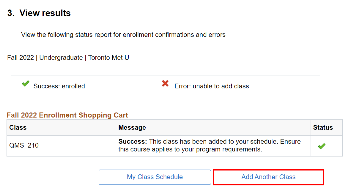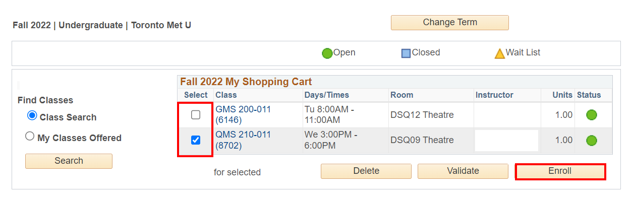 • Option 3: Search for and enrol in a specific class (recommended for graduate, School of Law, School of Medicine and Chang School students)