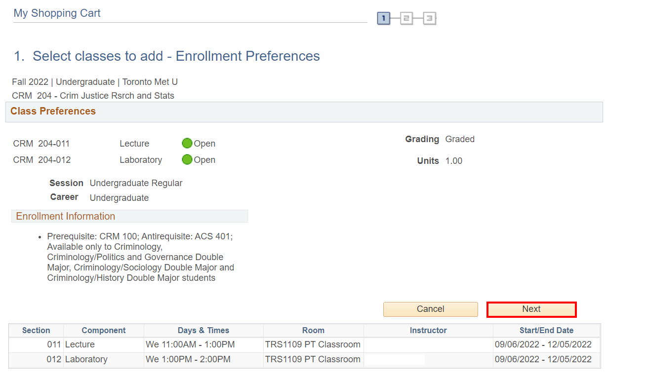 2. Note that if there is a laboratory component to your class, you will be prompted to select the related class section.