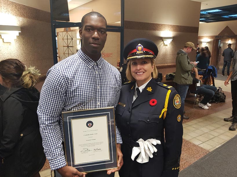 Photo: Security and Emergency Services employee Alexander Williams (left), with Deputy Chief Shawna Coxon, received a Community Member Award from the Toronto Police Services Board.