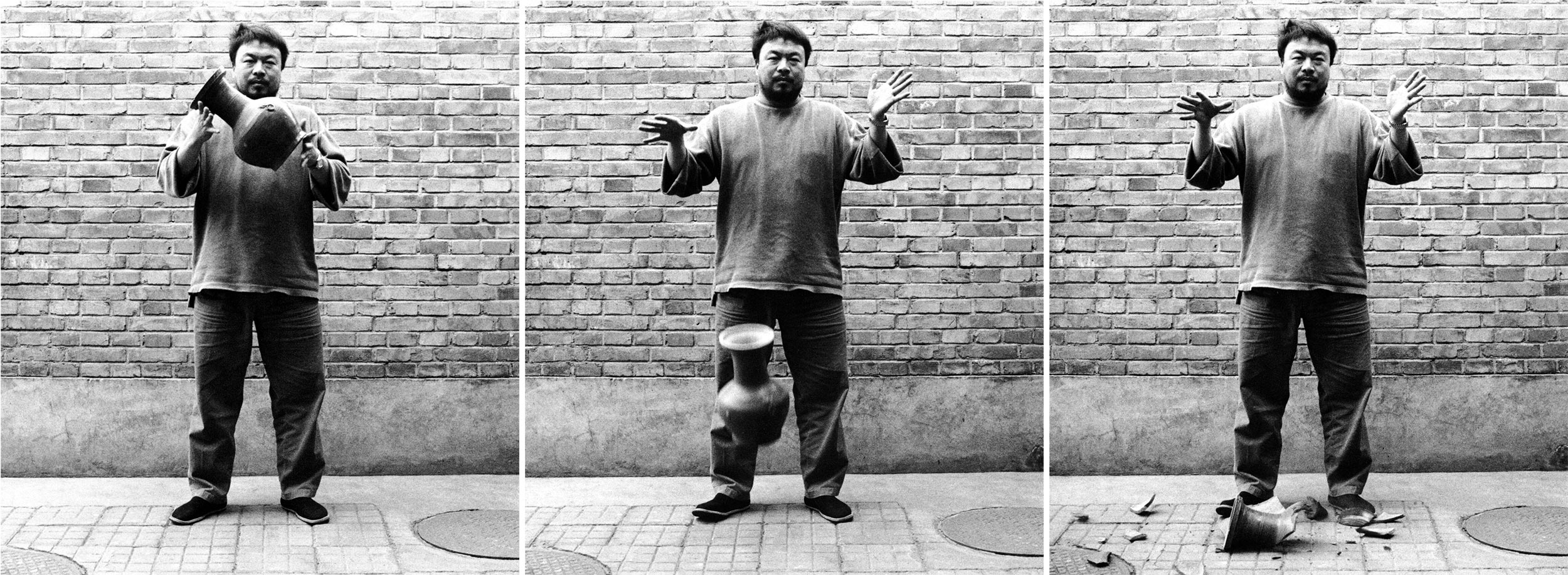 Above, the artist is featured in his iconic work, Dropping a Han Dynasty Urn (1995). Photo courtesy of Ai Weiwei’s studio.