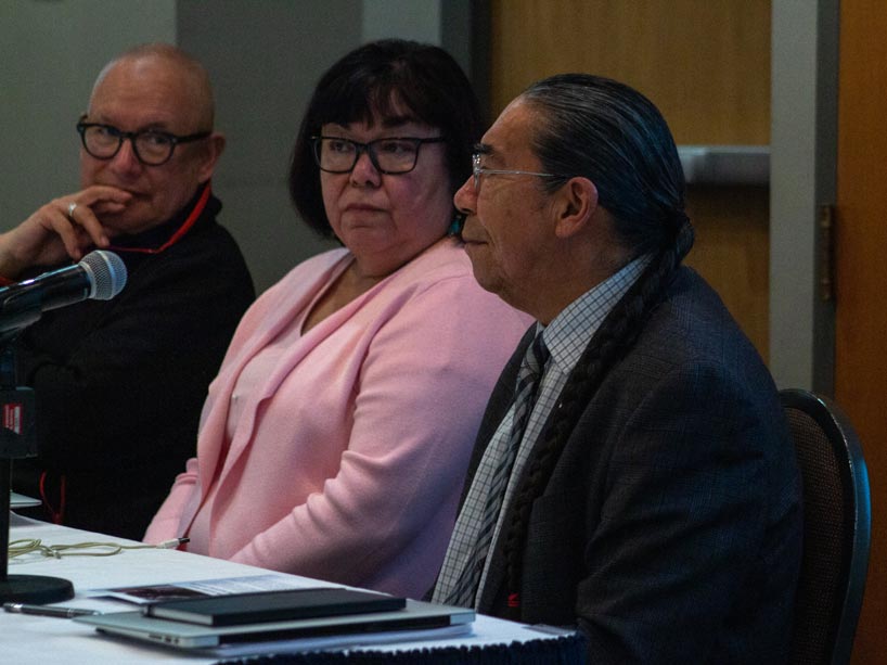Three Indigenous scholars joined the panel discussion on April 8, 2019, from left: David Newhouse, Trent University; Sheila Cote-Meek, Laurentian University; and Stephen Augustine, Cape Breton University. Photo: Kaytee Dalton.