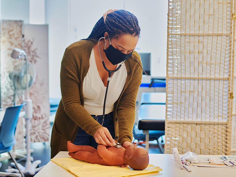 Following the same safety protocols as nursing students, midwifery students have been going to campus for clinical skills assessments that will ensure standards are met before they start their clinical placements.