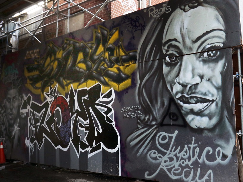 Nick Sweetman’s mural in Graffiti Alley honours D’Andre Campbell of Brampton, Ontario.