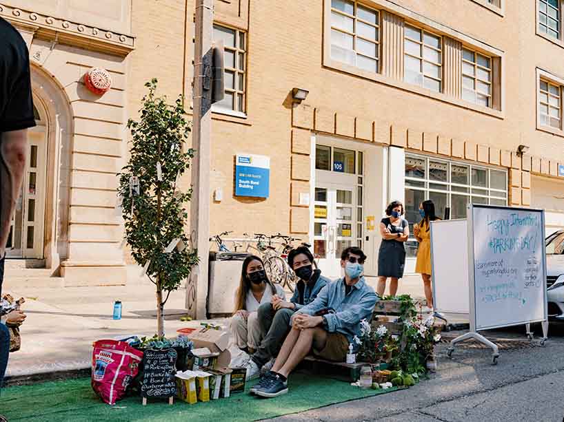 In partnership with Urban Minds (external link) , a Toronto-based non-profit with a mission to create meaningful ways for youth to shape equitable and sustainable cities, the school transformed parking spaces on Bond Street into a mini park for the community to use for the afternoon.