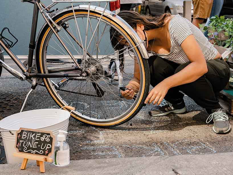 A bike tune-up station was a way to encourage students to consider biking as an option to commute to school.