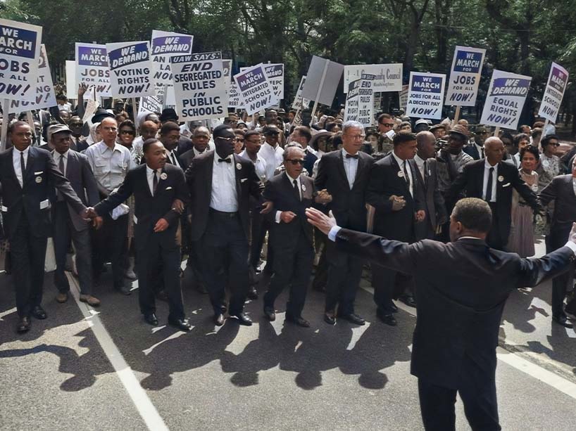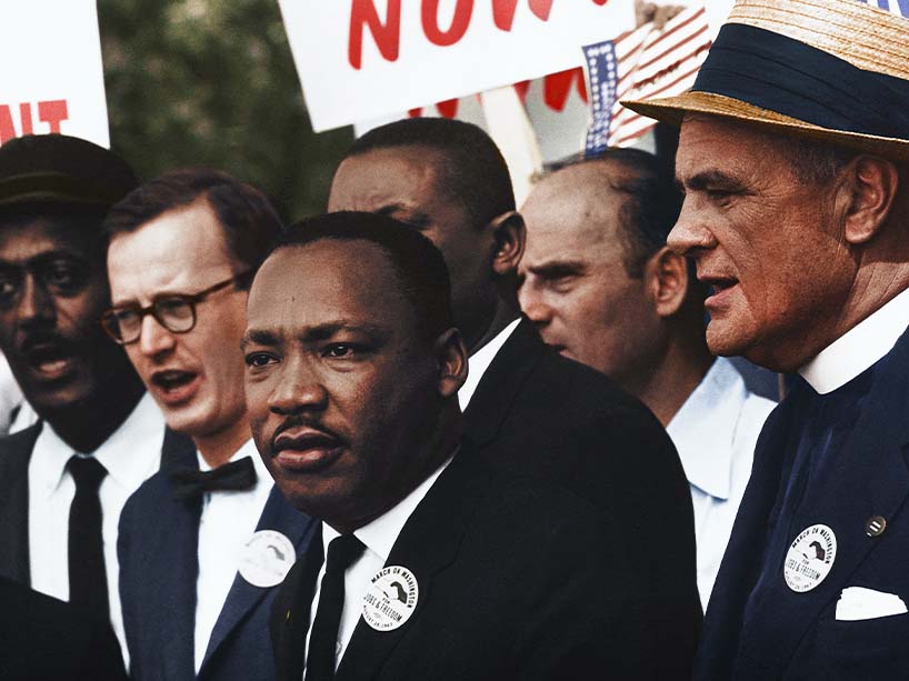 King in the March on Washington for Jobs and Freedom, in Washington, D.C., on Wednesday, August 28, 1963. The purpose of the march was to advocate for the civil and economic rights of Black Americans