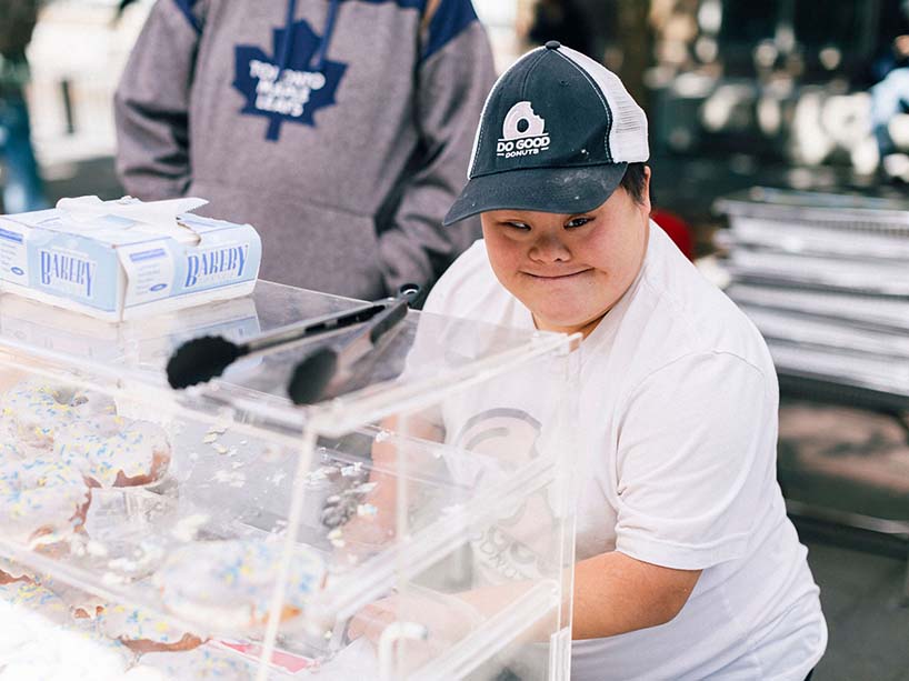 Social Ventures Zone startup Do Good Donuts provides job opportunities for young adults with intellectual and developmental disabilities. Above, an employee is seen in action.