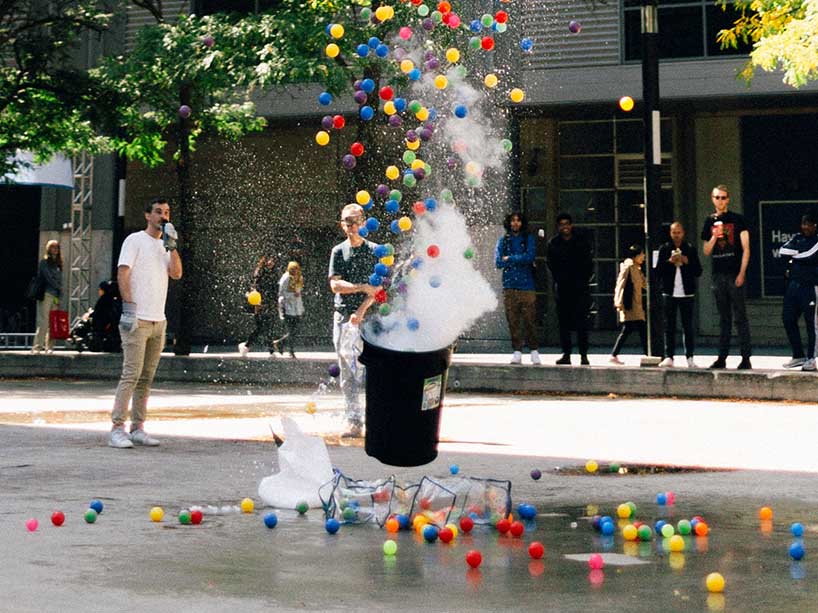 Science Discovery Zone startup Science Everywhere wowed the crowd by setting off an explosion of colourful plastic balls.