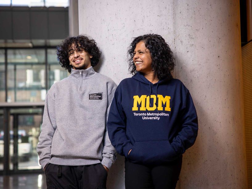 Aidan Rebello says the best part about his mom Amber Rebello working at the university as he pursues his degree in occupational health and safety is her help in navigating the campus experience. Amber has loved the hustle and bustle of the campus from the day she first interviewed for a TMU job 20 years ago; Aidan is also a fan of the endless opportunities to make connections in his burgeoning professional network.